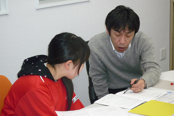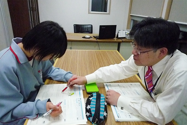 実際に授業を担当する教師と入塾間もない生徒さんとの二者面談です。塾やご家庭で安心して学習に取り組んでもらうためのカウンセリングを行います。お互いのことをより知るため、また個人的な目標設定の場として大いに役立っています。